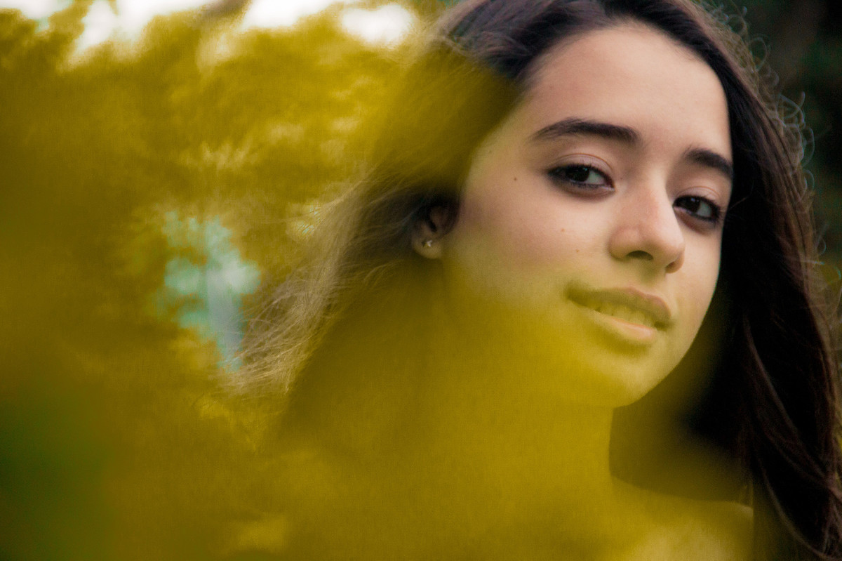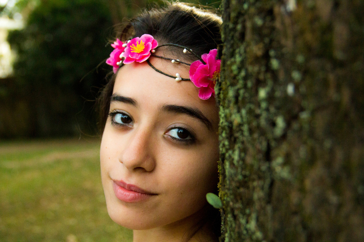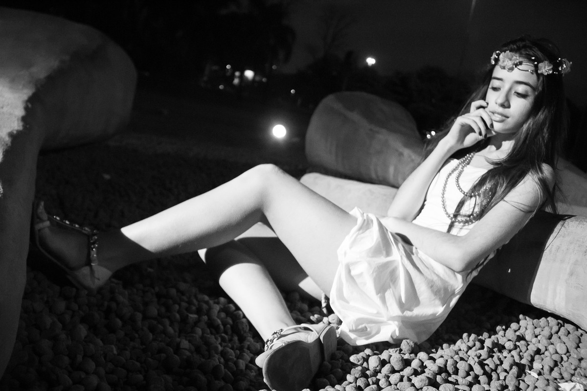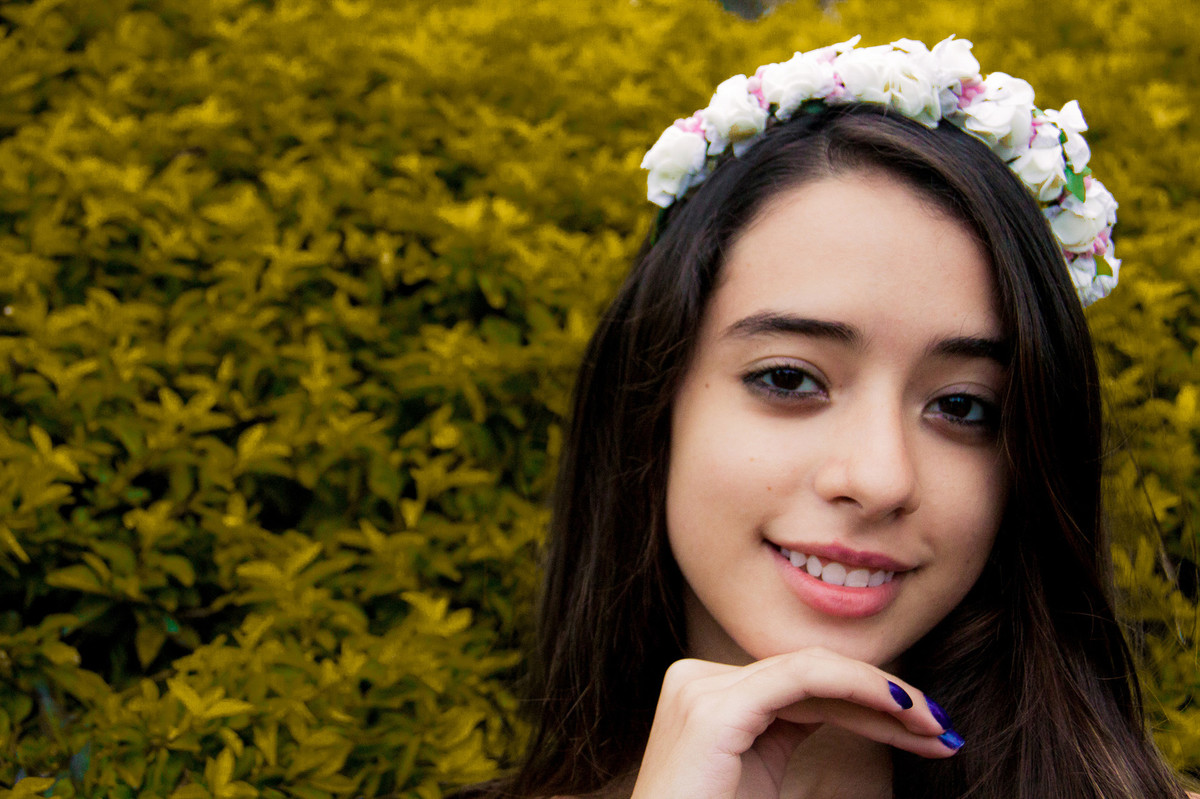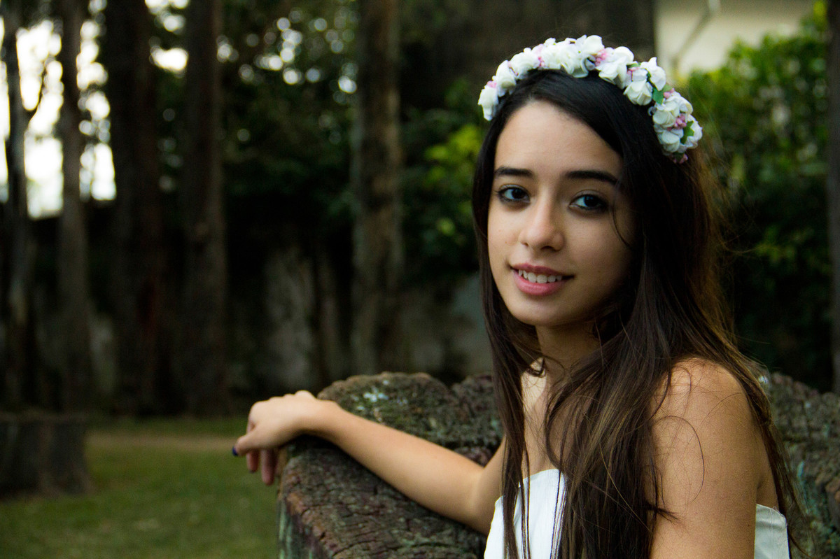A tarde estava fria e a Erika chegou tímida para o seu ensaio fotográfico de debuntante.