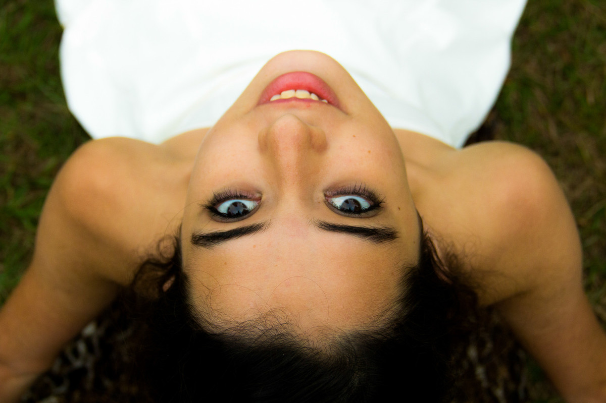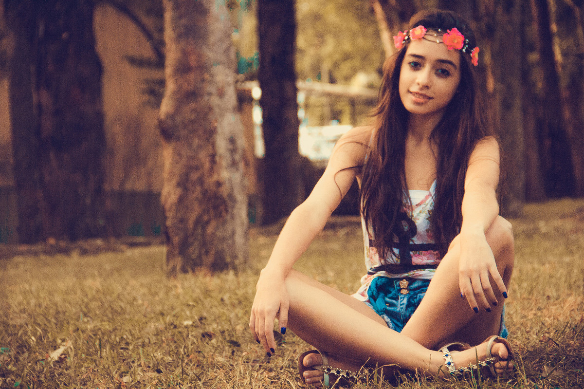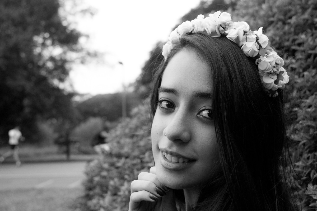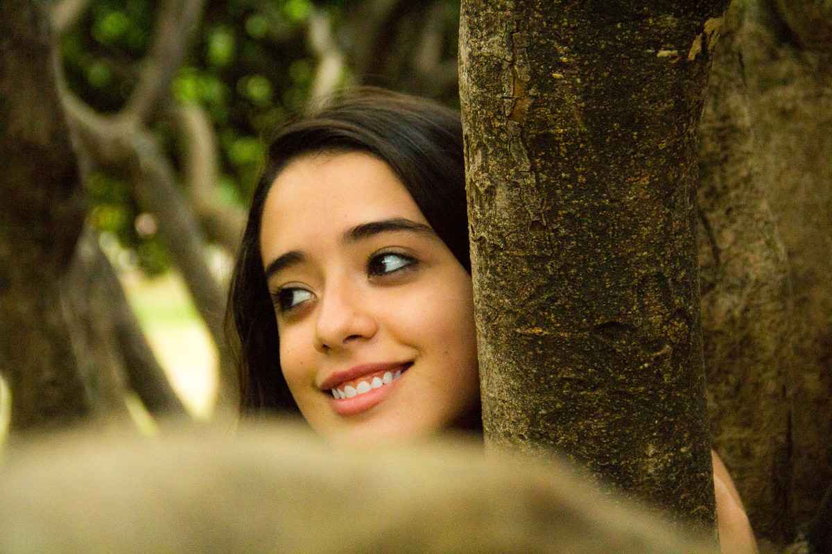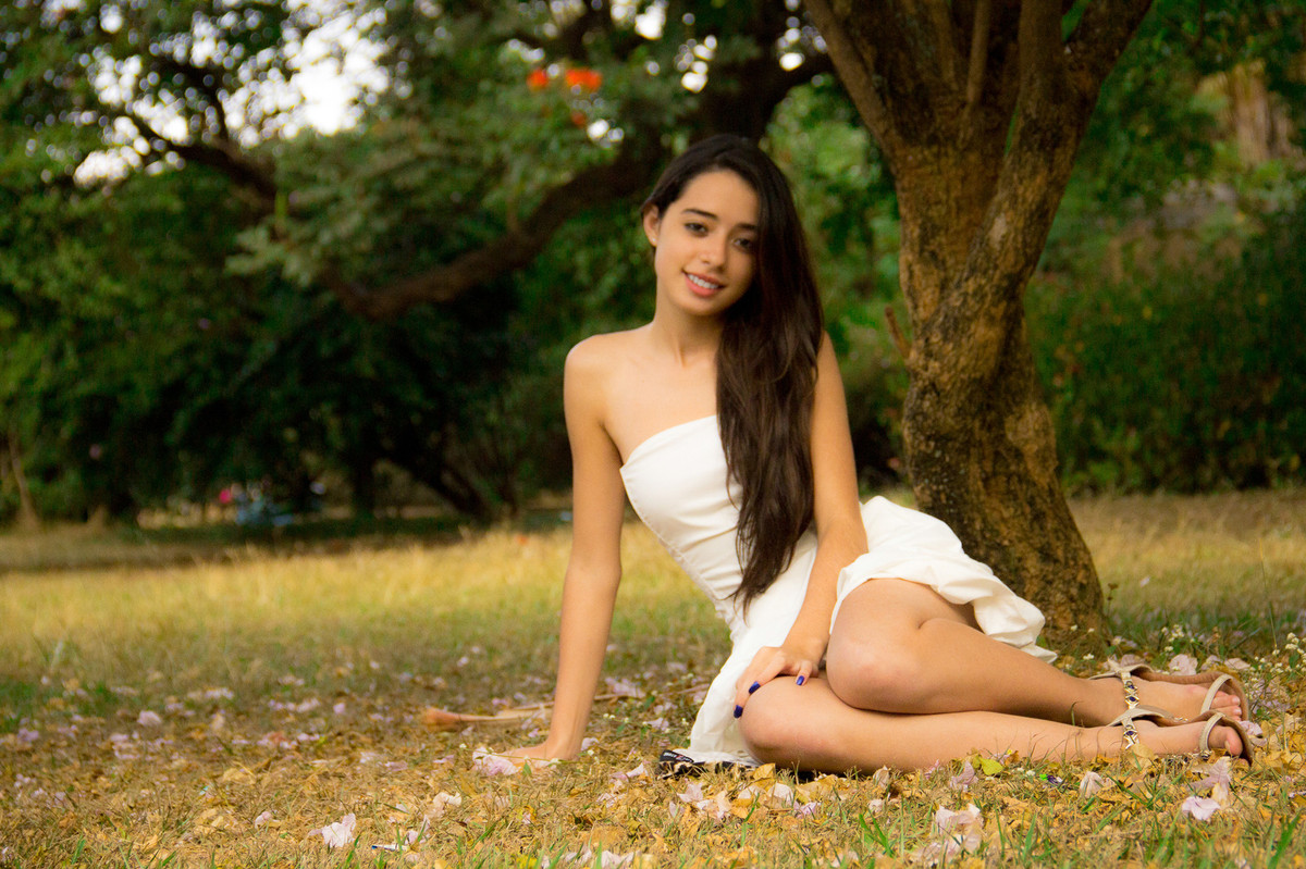 A tarde estava fria e a Erika chegou tímida para o seu ensaio fotográfico de debuntante.